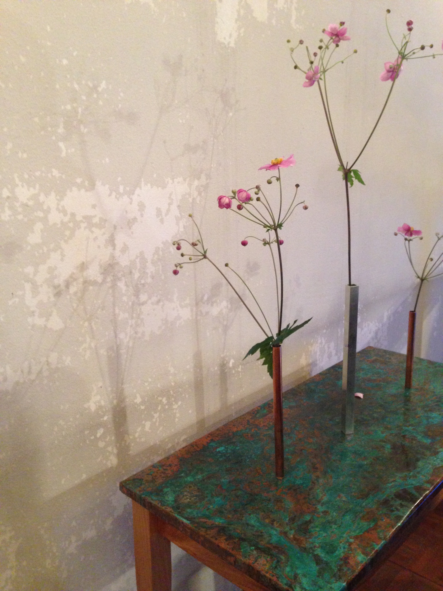 Copper top with magnetic copper and aluminium vases